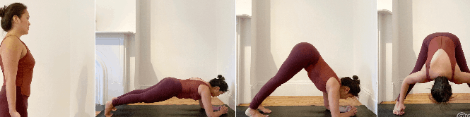 - Upward Facing Staff: Instead of tucking your legs in, keep them straight and pike up, so your legs stay parallel to the floor—great for deep core engagement